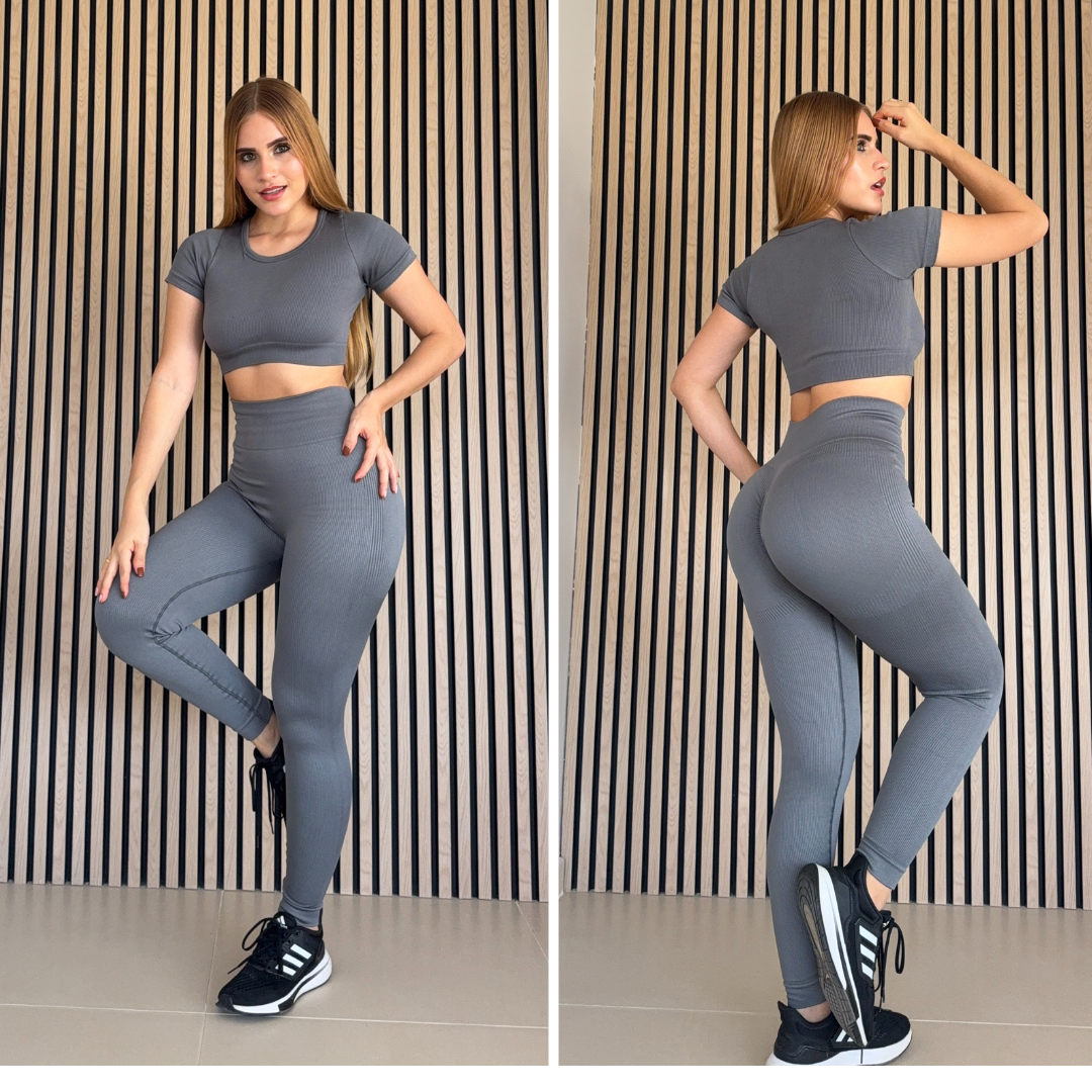 El set de leggings seamless push up con blusa es la unión perfecta de comodidad, diseño y estilo. Los leggings están confeccionados en tecnología seamless con efecto push up para realzar y moldear el glúteo de manera natural, mientras que la blusa complementa el look con un ajuste ligero, fresco y favorecedor.